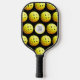 Promote your company, business or Pickleball Club with a custom colour pickleball paddle featuring your logo in a pattern of golden yellow pickleballs shown against an editable black background. COLOR CHANGE: Choose a background colour or add a styled graphics background to coordinate with your logo to create your own custom look by clicking on the EDIT tab in the PERSONALIZE section. PADDLE OPTIONS: Choose from Black, Tan or White edging and grip colours on the ordering page. ASSISTANCE: For help with design modification or personalization, colour change, transferring the design to another product or if you would like coordinating items, contact the designer BEFORE ORDERING via the Zazzle Chat MESSAGE tab below or email makeitaboutyoustore@gmail.com.