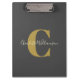 Simple Personalized Clipboard with Monogram and Name in Black and Gold
