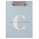 Simple Personalized Monogram and Name in Dusty Blue Clipboard