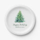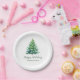 Simple personalized tree Christmas plate. Easy to change the text. Pretty watercolor design for the holiday season.