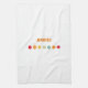 A simple stylish towel for pickleball featuring your name in orange block letters on a white background and with colourful pickleball balls underneath in blue, orange, green, grey and red. Makes a great custom gift for Christmas, birthday, Mother's Day, Father's Day, Grandparents' Day and more.