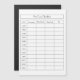 The simple checklist log caring for dogs and cats. Anytime you can make sure the dates when you did care at the last with this (Note health checks and/or vaccine logs in the "Vet" column). The title and caring fields on the top are customizable, and you can put your pet's name in the title field.