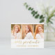 Trendy modern photo postcard inviting your family and friends to your daughter's graduation party. Simple Script Photo Collage | Graduation Party Invitation for 2015. Design by Elke Clarke © Visit our shop www.zazzle.com/monogramgallery* for more designs and styles. A simple gold foil typography handwritten script font text overlay (printed photo effect) with the words "2015 Graduate" with a three photo collage design. Replace sample photos with your own. White and gold colours. Other styles and colours available.