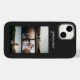 Modern phone case featuring a simple and minimal design with a photo collage of four of your favourite pictures along with your name in an elegant script over a black background.