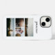 Modern phone case featuring a simple and minimal black and white design with a photo collage of four of your favourite pictures along with your name in an elegant script.