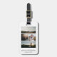 Modern luggage tag featuring a simple and minimal black and white design with a photo collage of four of your favourite wedding pictures. Below are your names in an elegant script along with your wedding date. The back has a full size vertical photo.