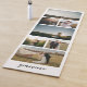 Modern yoga mat featuring a simple and minimal black and white design with a photo collage of seven of your favourite wedding pictures along with your name in an elegant script. This custom yoga mat is perfect for a new bride.