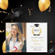 Celebrate in style with this simple and stylish graduation announcement card. Add your favourite photo and details. Design features class of 2025 in elegant script with illustration of laurel wreath, a grad cap topper and diploma. A photo of the graduate with their name and details in a mix of stylish black and gold typography on a clean white background. Back of card has a replica of the laurel wreath design. Easy to customize. Congratulations!