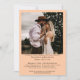 This stylish pale orange or coral peach wedding rehearsal & rehearsal dinner invitation is modern, chic, and minimalist. It features a photo of the couple with understated text containing all of the relevant information on both the wedding rehearsal and the dinner to follow. Simple, beautiful and elegant.