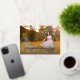 Faire-part moderne de graduation fille avec "félicitations à notre diplômé" avec une seule ligne de texte pour les détails de graduation en feuille d'or réel sur votre photo horizontale de fond de sang préféré. "Félicitations" est dans une police d'écriture élégante et le côté arrière a un collage avec trois photos avec votre message personnel. Un design simple qui fait de votre photo la caractéristique principale.