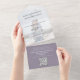 This design features a modern modern photo vellum QR code, with a transparent clear picture overlay, with rsvp via website online URL, a spring-summer garden bouquet, a lilac lavender calligraphy ampersand, a botanical greenery budget invitation, a simple elegant soft romantic, an elegant seal and send invitation, a calligraphy trifold budget set, a simplistic garden wedding invitation