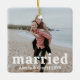 Modern style Christmas ornament featuring a simple and minimal layout with "married" in a groovy retro font along with your names and year over your favourite wedding photo. This ornament makes a great gift for a newlywed couple for their first Christmas married.
