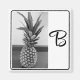 This magnet features a black and white photograph of a pineapple with a customizable single initial.