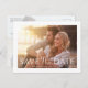 Announce your big day with this elegant save the date card designed as a wedding postcard. Perfect for couples seeking a budget-friendly option, this card features calligraphy script typography and a modern photo template. The minimalist simple layout highlights your love story with stylish elegance and minimal photography. Add a QR code for your wedding website to keep guests informed. A creative and chic way to set the tone for your special day!