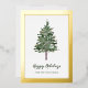 This minimalist holiday card says features modern script typography with a spot for your name. A simple, elegant watercolor pine Christmas tree adds a stylish and festive touch that is also professional enough for any business greeting. An elegant, real gold foil border adds luxe style.