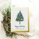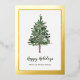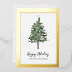 This minimalist holiday card says features modern script typography with a spot for your name. A simple, elegant watercolor pine Christmas tree adds a stylish and festive touch that is also professional enough for any business greeting. An elegant, real gold foil border adds luxe style.