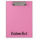 This pink clipboard has text in black script. The text can be edited or deleted.