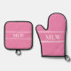 Simple Pink and White Monogram Oven Mitt & Pot Holder Set