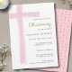 Simple Pink Cross Girl Christening Baptism Invitation