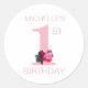Simple Pink First Birthday with Roses and Name Classic Round Sticker