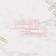 An elegant appointment reminder thin business card with a classy gold coloured script font on a simple pink watercolor style background. Personalize this minimalistic pink and gold reminder card by adding the name of your hair and beauty salon. This template is made to write in the name of the scheduled hairstylist and the date and time of appointment.