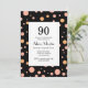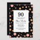 Simple Pink & Peach Polka Dot Black 90th Birthday Invitation