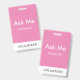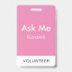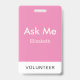 Simple Pink Personalized Volunteer Ask Me Badge