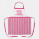 This apron with a white bib and a pink stripe pattern below comes with the default text of Mom's Home Cooking in bold letters, but it can be customized to make a great gift for anybody who enjoys cooking or baking and the colour pink.