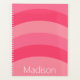 The curved stripes are different shades of pink. White text is near the bottom for your name or monogram.