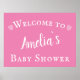 Simple Pink Typography Baby Shower Welcome Sign with Hearts. Pink baby shower welcome sign for your baby shower party. This baby shower party sign is easily customized with your text.