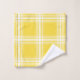 This bath towel set features a simple plaid pattern in lemon yellow and white.