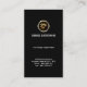 A simple creative design. In an all black background, a vertical faux gold line comes through from the top. Alongside it, is your prestigious name and job title. Eastwards of this is your optional logo. Directly below near the base of the card, are the business name and contact details.