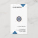 A simple design with the main accentuating features being four blue arrow tabs. The first two tabs at the front face of the card signify the positions of east and west and likewise, the remaining two, north and south for the back of the card. All the arrow tabs show your presence in the global markets. At the top, you have your name and job title. This is followed by the logo and business contacts.