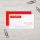 Simple Plain Red Label Treasurer Minimalist Business Card