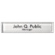 A simple plain desk name plate in classic white with a thin black border/frame around it. The border or frame can be customized in colour by editing the background colour of the desk name plate. Font type, colour and size can also be customized.