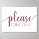 Simple horizontal "Please Take One" shower, party, or reception table signage featuring a fun, casual hand-lettered script. The classic design includes a modern handlettered quote typography overlay. The lovely font with a customizable background color makes it easy to fit any theme. For other colors or matching products, please visit the JustFharryn Zazzle store, or contact the designer, c/o fharryn@yahoo.com All rights reserved. #zazzlemade