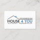 A two sided real estate business card design. The real estate business card is showing a black line which is forming a house logo together with the real estate business name and contact details. The main colours for the real estate business card are white, black and blue. This design will work perfectly for a builder as well as real estate agents and agencies.