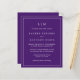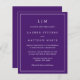Simple budget wedding invitation featuring a modern yet elegant design with your two letter monogram at the top and your details surrounded by a thin border. All text is in white over a purple background. The fonts and background colours may be changed to any colours you wish by clicking the "customize" button. These cheap wedding invitations are great for a minimalist couple.