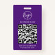Custom ID name badge in a vertical layout with your logo and QR code. Use the template to add each employee name and title. The backside has your contact information and instructions for returning if found. This simple yet professional design features all text in white over a royal purple background and may be changed to any colour you wish by clicking the "customize" button. This corporate style ID badge may be personalized for any type of business big or small.
