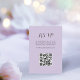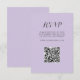 This simple wedding RSVP card features clean grey text on a soft purple background, offering a modern and elegant look. A dedicated space for a QR code allows guests to quickly access your wedding website or RSVP details, adding a touch of convenience to this minimalist design. Perfect for any contemporary wedding theme, this RSVP card combines functionality with a stylish, understated aesthetic.