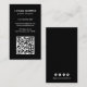 Modern vertical business card featuring a simple and minimalist style with your QR Code on the front and social media icons on the back. All design elements are in white over a black background. A plain and minimal design that can be customized for any business professional.