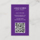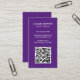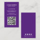 Modern vertical business card featuring a simple and minimalist style with your QR Code on the front and social media icons on the back. All design elements are in white over a purple background. A plain and minimal design that can be customized for any business professional.