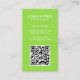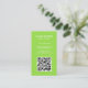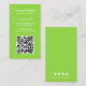 Modern vertical business card featuring a simple and minimalist style with your QR Code on the front and social media icons on the back. All design elements are in white over a neon lime green background. A plain and minimal design that can be customized for any business professional.
