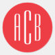 Simple Red and White Three Letter Monogram Classic Round Sticker