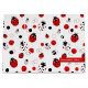 Simple and elegant pattern featuring ladybugs clipart in red, black and white colour with circles and dots in red and black and a personalized name label.
