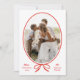 Simple Red Bow Oval Photo Christmas Holiday Card