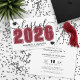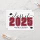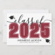 This classic yet modern horizontal graduation announcement doubles as a party invitation. The front features an oversized "Class of 2026" in bold black and white, with the year in a rich red, maroon, or crimson colour, complemented by elegant grey script accents. Two graduation cap icons add a celebratory touch, with space below for the graduate's name and school. Colours can be customized to match school colours for a personalized look.