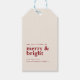 If you love classic, this simple tag is right for you. The tag features an elegant design, with a red background with delicate details beautifully scripted in a white text exuding an air of sophistication. Background colour and text is editable.