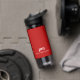 Simple and sleek, this custom vivid red and white water bottle design has modern typography spelling out your monogram initials in lower case type face with your name in all caps in a smaller font size placed below your monogram for a professional contemporary look. Take along this attractive personalized water bottle wherever you go! It is a great way to compliment your personal business branding.