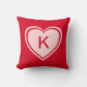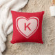 Simple Red Pink Heart Monogram Valentine`s Day Throw Pillow
